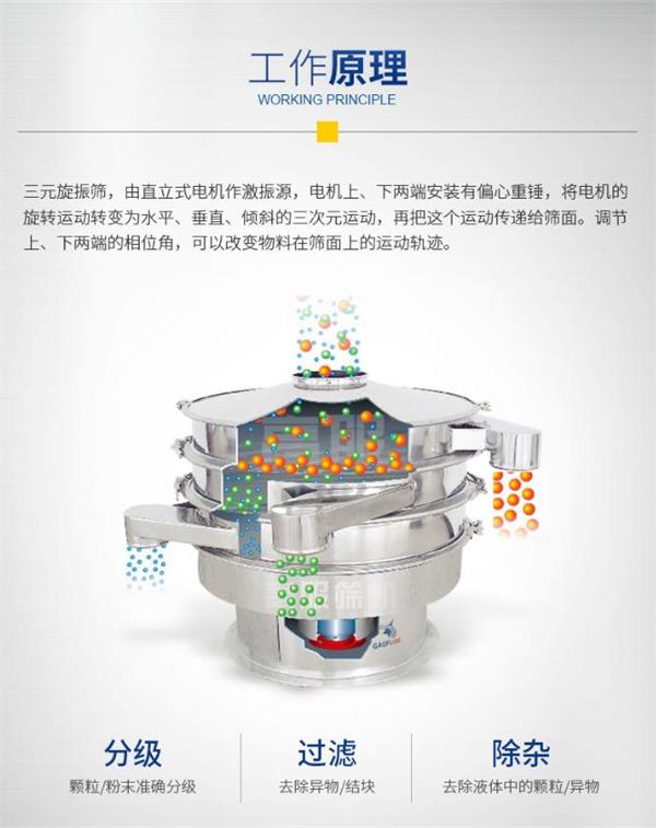 不銹鋼三次元旋振篩工作原理